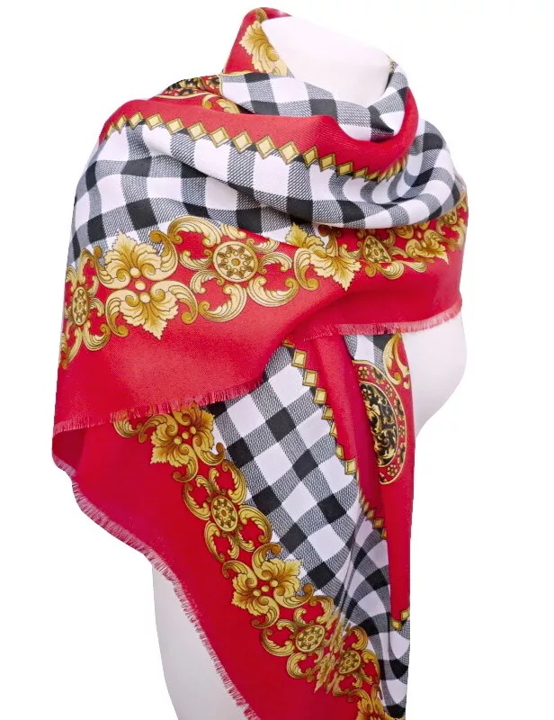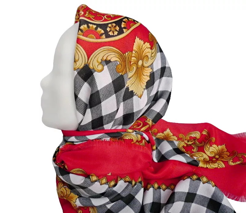 großes, leichtes Damen Cabrio Tuch, quadratisch, kariert, Karos, XXL Kopftuch, rot, schwarz, weiß