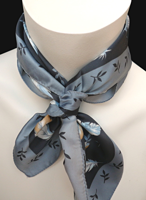 Halstuch, Nickituch mit Federn und Blättern, grau, braun, blau