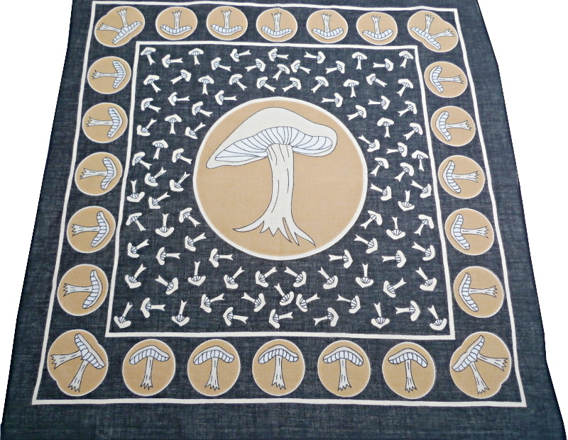 Halstuch, Nickituch mit Pilzen, Lamellenpilzen, 100% Baumwolle, braun, schwarz, weiß