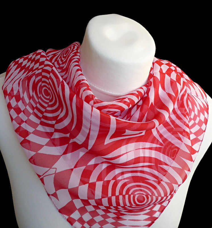 Damen Chiffon Nickituch, leicht und luftig, rot, weiß, kariert, Kreise, Ringe