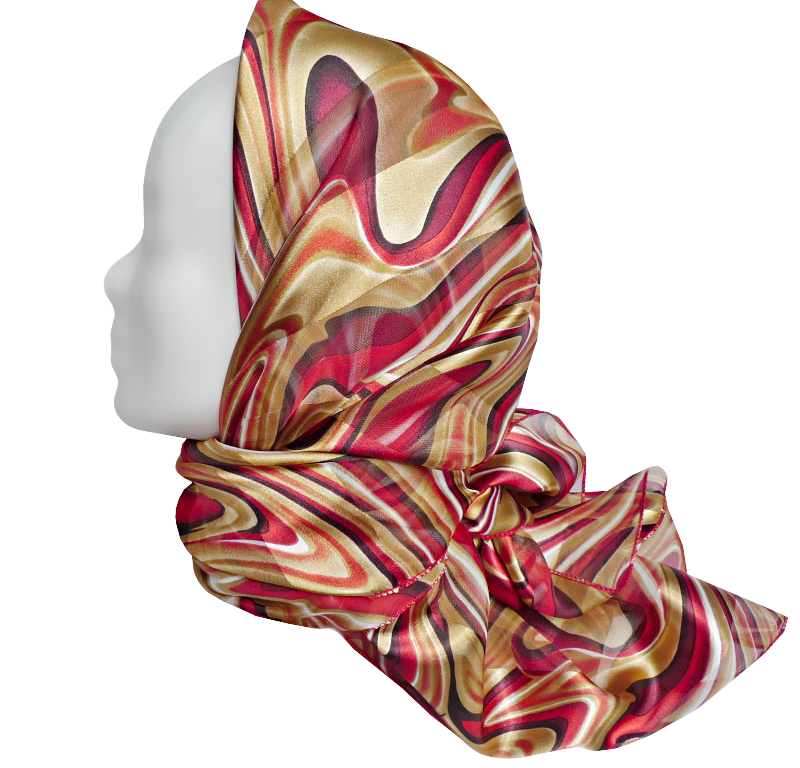 elegantes Damentuch, Cabriotuch, Halstuch, Tuch mit Streifen, Wellen, gestreift, gold, gelb, weiß, rot