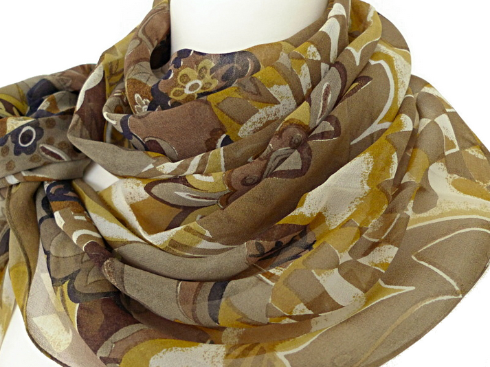 Chiffon Schal, 100% Seide, braun, gelb, schwarz