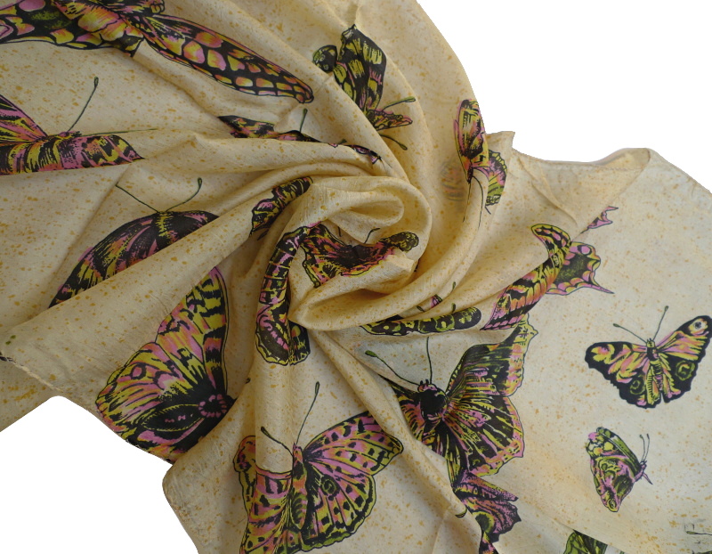 Damenschal mit Schmetterlingen, 100% Seide