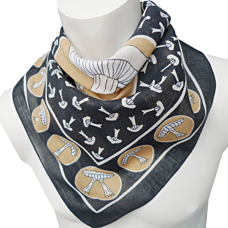 Halstuch, Nickituch mit Pilzen, Lamellenpilzen, 100% Baumwolle, braun, schwarz, weiß