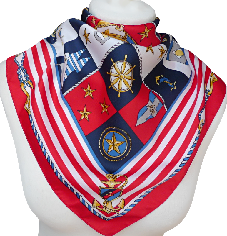 maritim Halstuch, Nickituch, Anker, Sterne, Steuerrad, rot, blau, weiß, gold