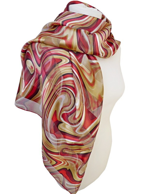 elegantes Damentuch, Cabriotuch, Halstuch, Tuch mit Streifen, Wellen, gestreift, gold, gelb, weiß, rot